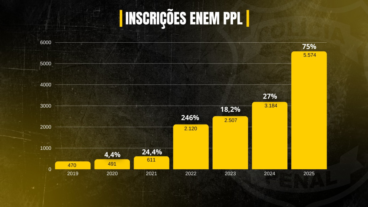 A Polícia Penal de Goiás volta a quebrar o recorde de inscritos em uma edição do Exame Nacional do Ensino Médio para adultos privados de liberdade (Enem PPL). Em 2025, são 5.574 reeducandos e reeducandas aptos para o teste, um acréscimo de 75% em relação ao ano passado (3.184).